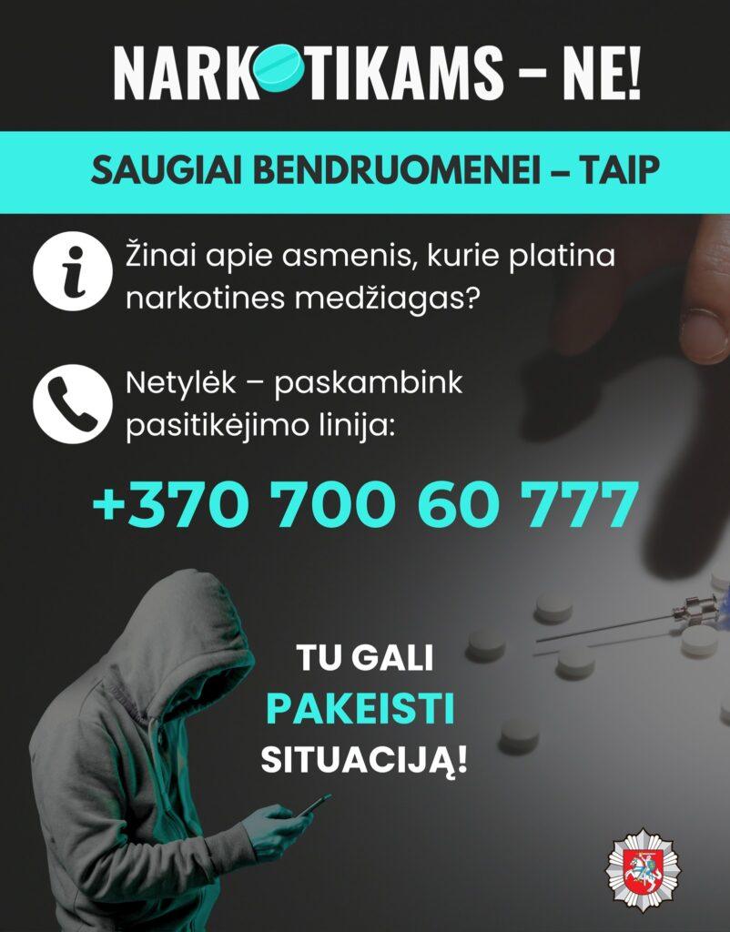 Netylėk – paskambink policijos pasitikėjimo linija +370 700 60 777. Kartu ištarkime NARKOTIKAMS – NE!