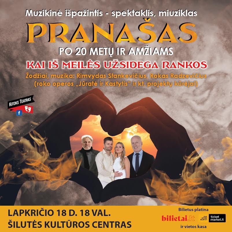 „Pranašas” – sugrįžtantis muzikinis spektaklis. Pirmą kartą Lietuvoje pristatytas prieš dvidešimt metų, jis sulaukė ypatingo žiūrovų dėmesio ir paliko ryškų pėdsaką Lietuvos scenos meno istorijoje. Dabar kūrinys grįžta atsinaujinęs – su ta pačia muzika ir tekstais, tačiau nauja kūrybine komanda, kitokia menine vizija ir šviežiu atlikėjų kvėpavimu.