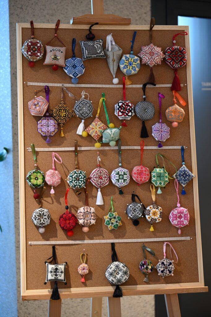 Ilgai stoviniavome prie Ramunės įvairiais raštais išsiuvinėtų adatinių. Gėrėjomės zodiako ženklų serija ir keletą jų nusipirkome. Jos bus naudojamos ne tik pagal paskirtį, bet ir puoš namus.
