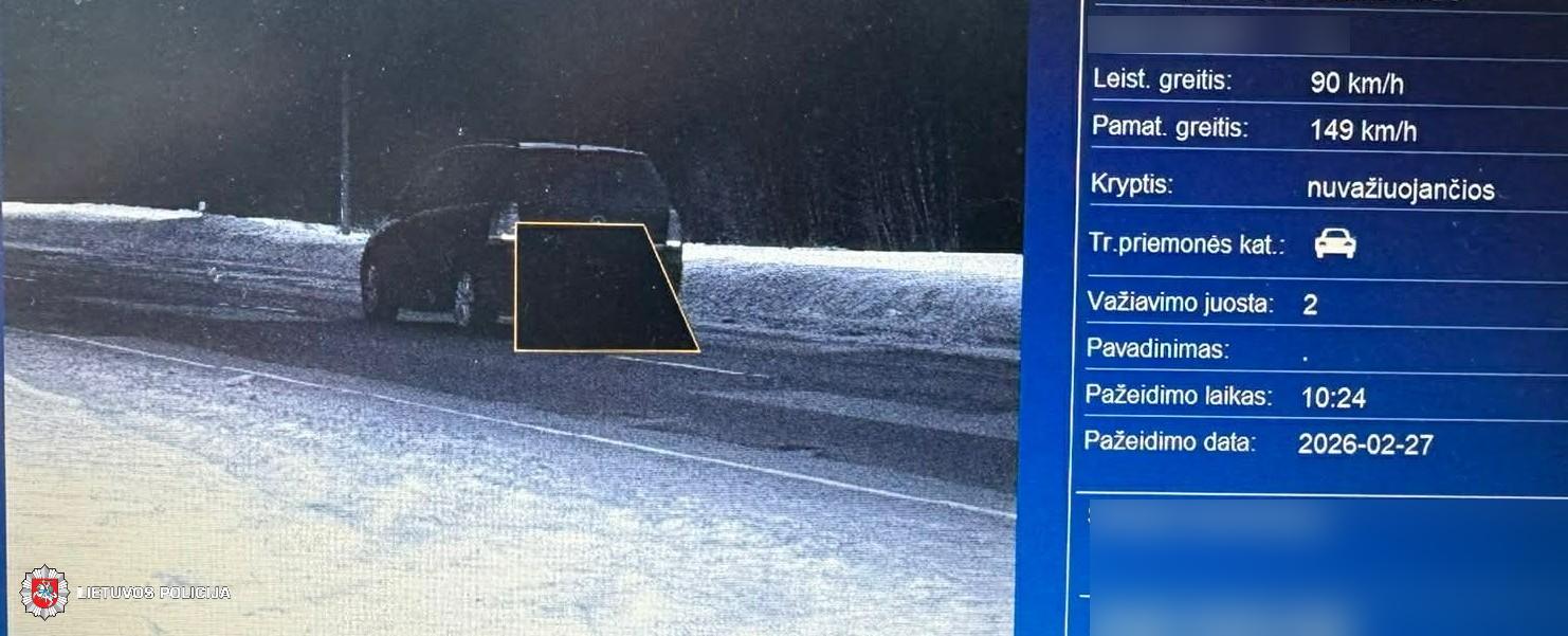 Vasario 27 d. policijos pareigūnai užfiksavo šiurkštų Kelių eismo taisyklių pažeidimą – kelyje, kuriame leistinas važiavimo greitis yra 90 km/h, vairuotojas važiavo net 149 km/h greičiu.